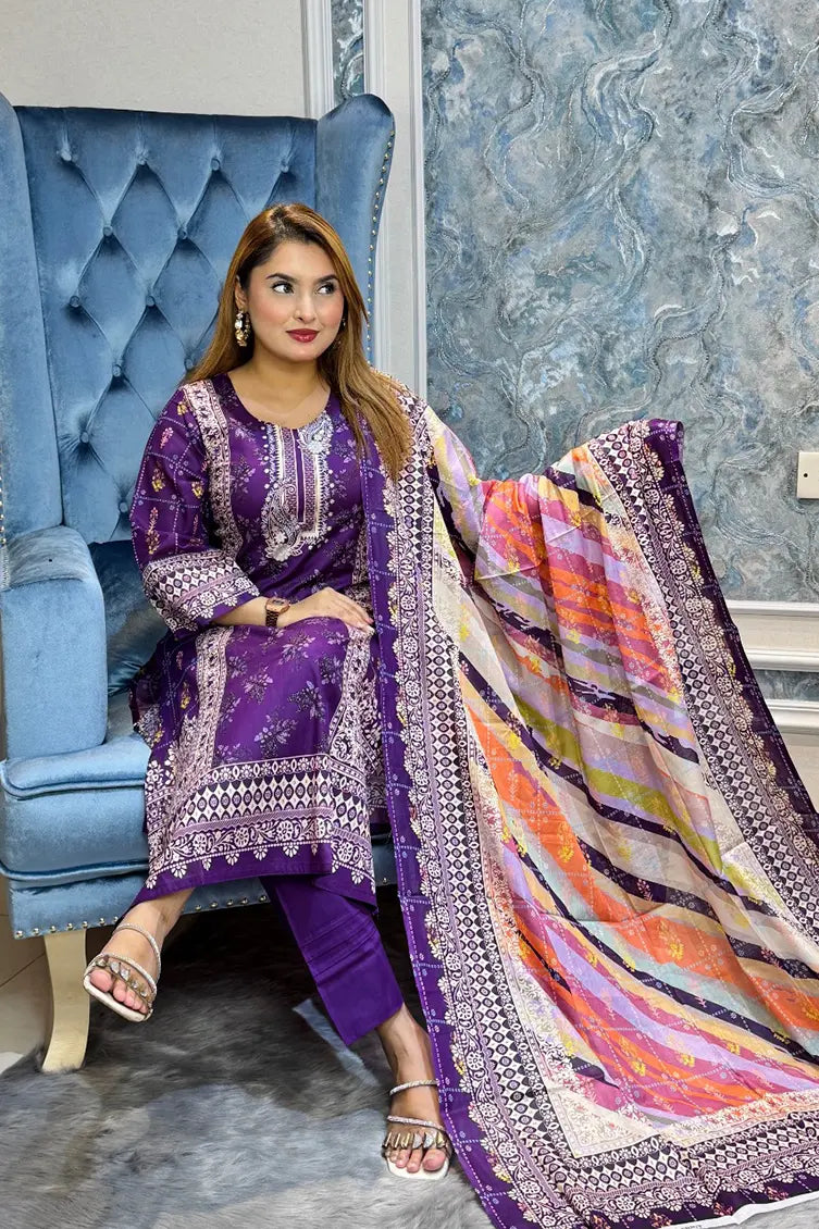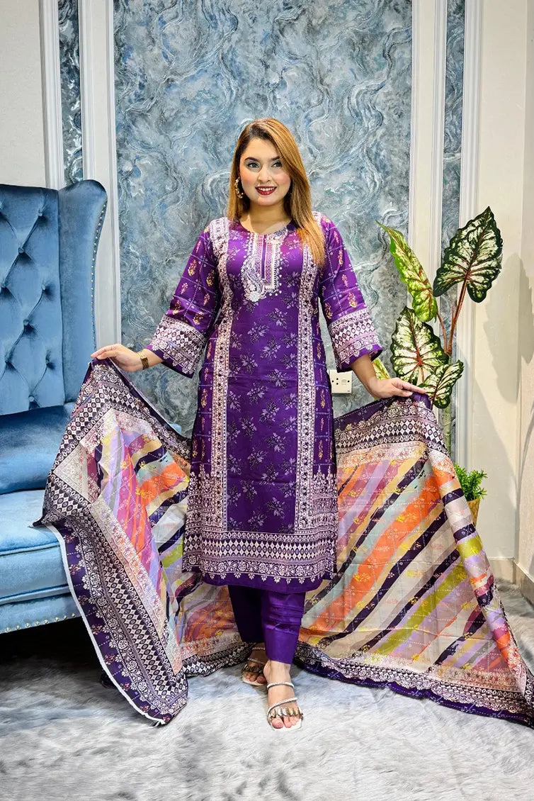 আনস্টিচ এ গ্রেড কোয়ালিটি থ্রি পিস জামা + প্যান্ট + ওড়না